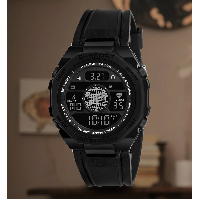 HarborBoys will love this black digital watch with its trendy design Digital Watch – For Boys The ultimate black digital sports watch with a bold and unique style