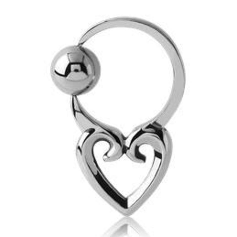 The 16 gauge heart captive bead ringismade from 316L stainless steel.