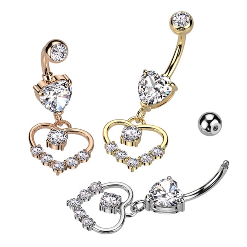 The 14 gauge heart czbelly dangle is made from 316L stainless steel with external threading. Only the 5mm top ball is removable. Choose your finishbelow.