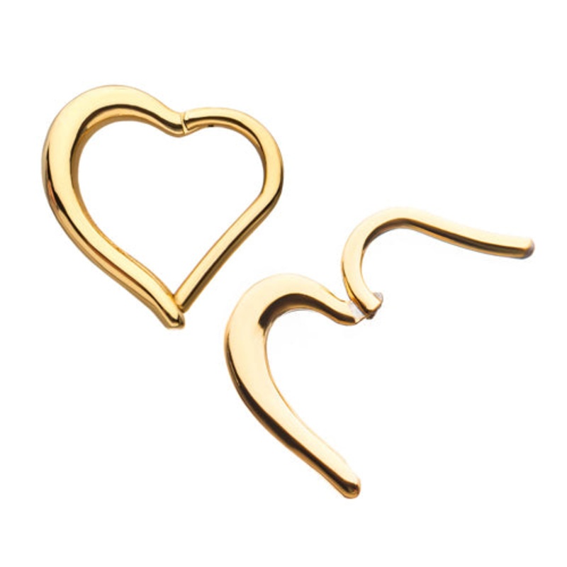 Heart Gold Hinged Ring 16g – 5/16″ diameter (8mm) Gold Stainless