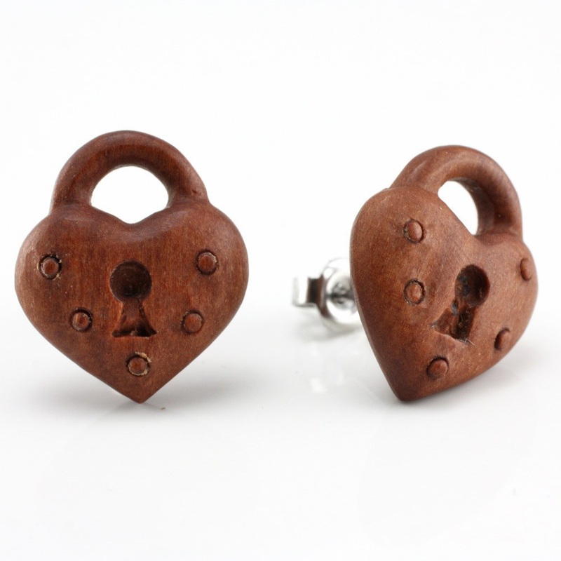 These heart lockstud earringsare hand carved from sabowood by Urban Star Organics. The postsand friction backs aremade from 316L stainless steel.
