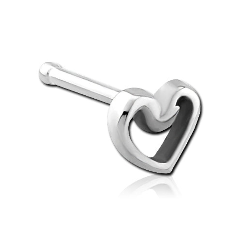 The 20 gaugeheart outline nose bone is made from 316L stainless steel with 1/4" wearable area.