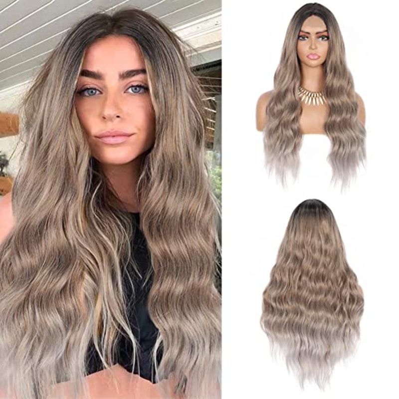 Heat Friendly Ash Blonde Lace front wig Dark Rootshigh-quality heat-resistant fibre synthetic fibres. Its texture is very close to human hair, skin-friendly, silky, super soft, and has a natural appearance, lightweight and easy to wear.middle partaverage c