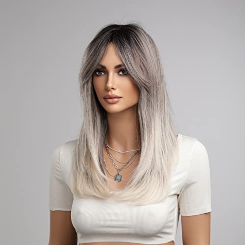 Heat Resistant Ash Gray Wig100% high quality wig hair, heat resistant synthetic fibersnatural and soft,feels like real human hairuse curling irons to create more styles.natural bangs can perfectly hide the hairline.Cap and Size 22-24 inch. Soft straps adju