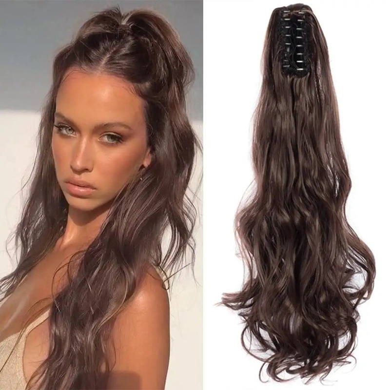 22″ Wavy Claw Clip in Golden black Hair Extensions Ponytail