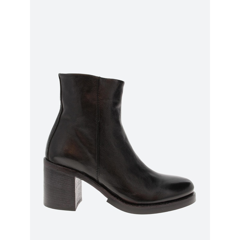 gravitypope Heather ankle boots with a modern edge that sits on a stacked block heel.Ankle heightInside zip closureTonal stitchingStacked leather heelAlmond toeMeasurements:65mm heelMaterials Upper: leatherLining: leatherOutsole: rubberMade in ItalySize Gu