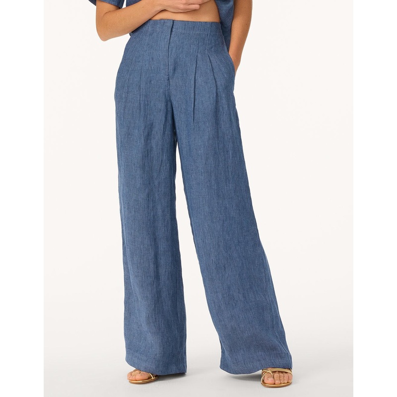 looks like tailoring, feels like luxury. we designed this trouser from lightweight italian hemp, and cut it for a slightly wide-leg fit.high-rise waist with zipper fly, hook and bar closure, and interior buttonelastic backing on the waistpleatsside pockets