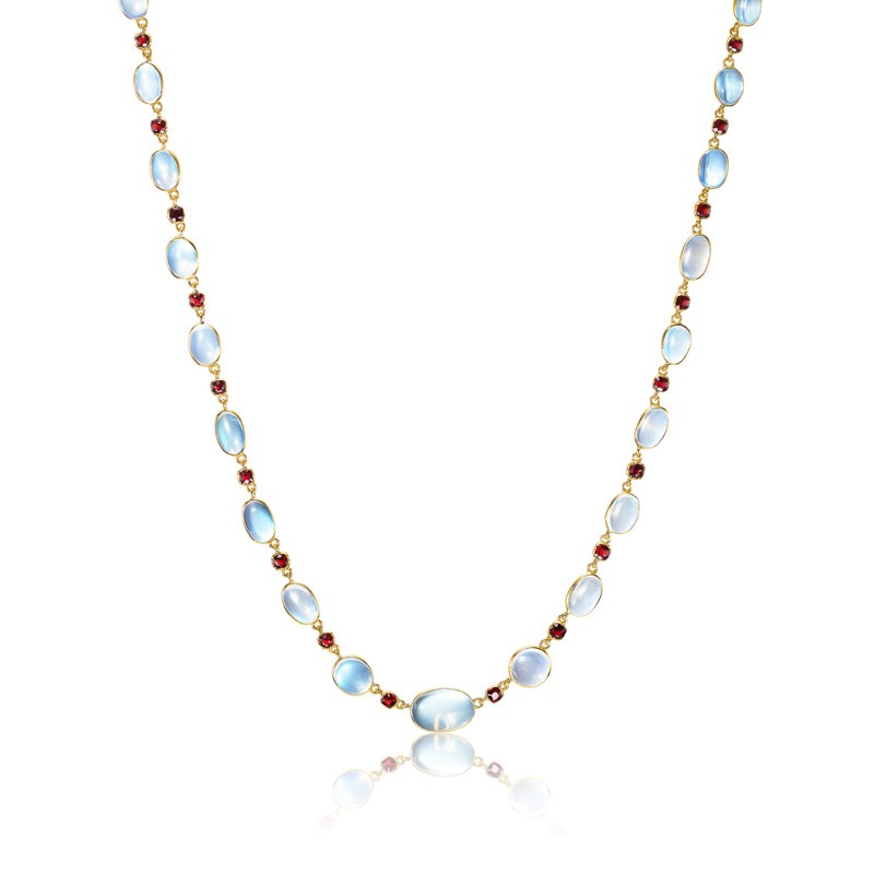 Garnets and moonstones create this effortlessly chic and neutral necklace that can be dressed up or down for the perfect vintage touch.