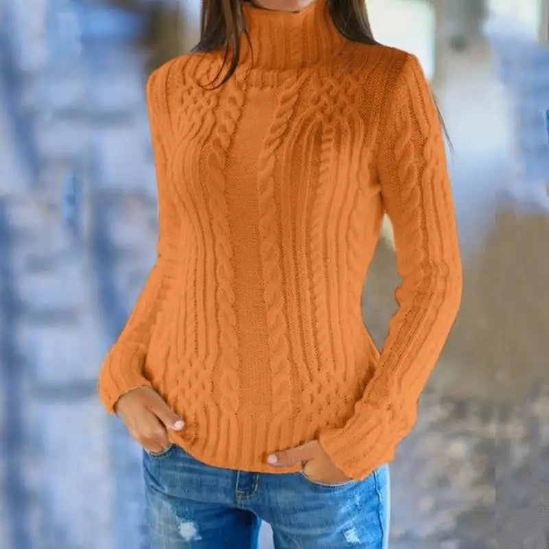 High Neck Twist Knit SweaterYou will love this beautiful turtle neck sweater. Various sizes are available from small, medium, large and even plus sizes.*Please note: Delivery is 14-21 daysMaterial: PolyesterMaterial: AcrylicTechnics: Computer KnittedPatter