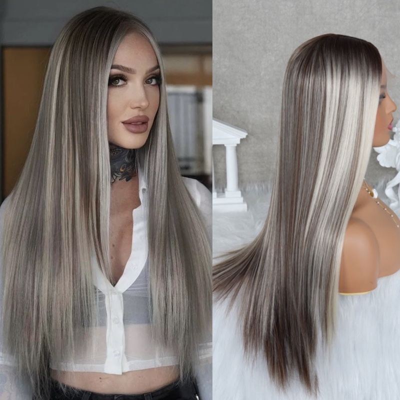 Highlight Ash Blonde Lace Front WigLook breathtakingly beautiful in this Highlight Ash Blonde Lace Front Wig. Constructed with high-temperature fiber, this silky straight wig is long and features a 180% density. The wig has an ash blonde base with subtle g