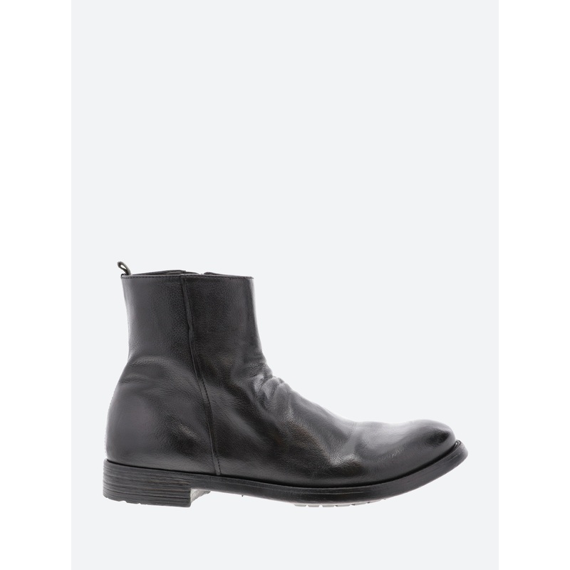 Comfort and style go hand in hand in the Officine Creative artisan Hive boots from black smooth soft leather. Their pared-back and timeless silhouette reveals a rounded almond toe.Ankle heightSide zip closureSignature grosgrain heel pull tabAlmond toeStack