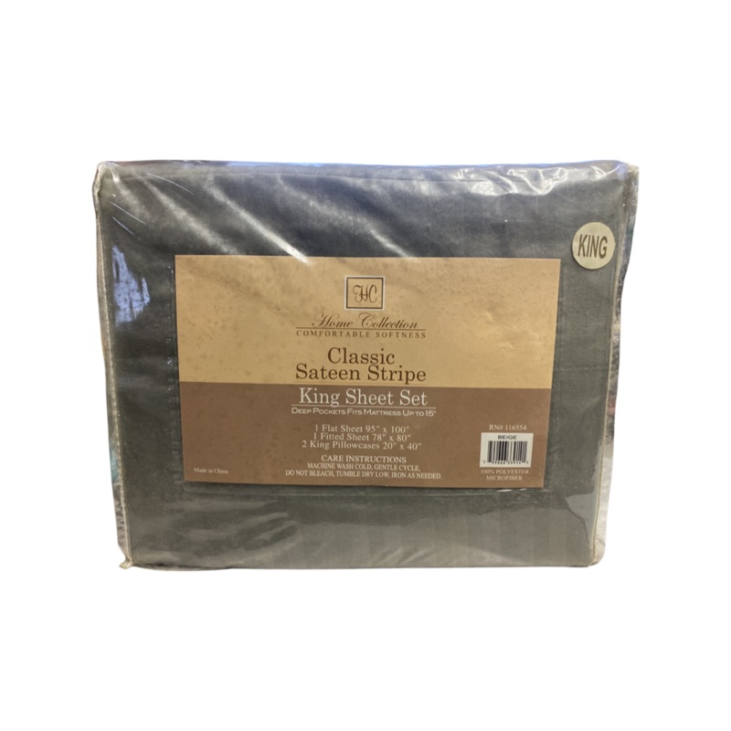 Home Collection 4 Piece Classic Sateen Stripe Sheet Set, King (Beige)