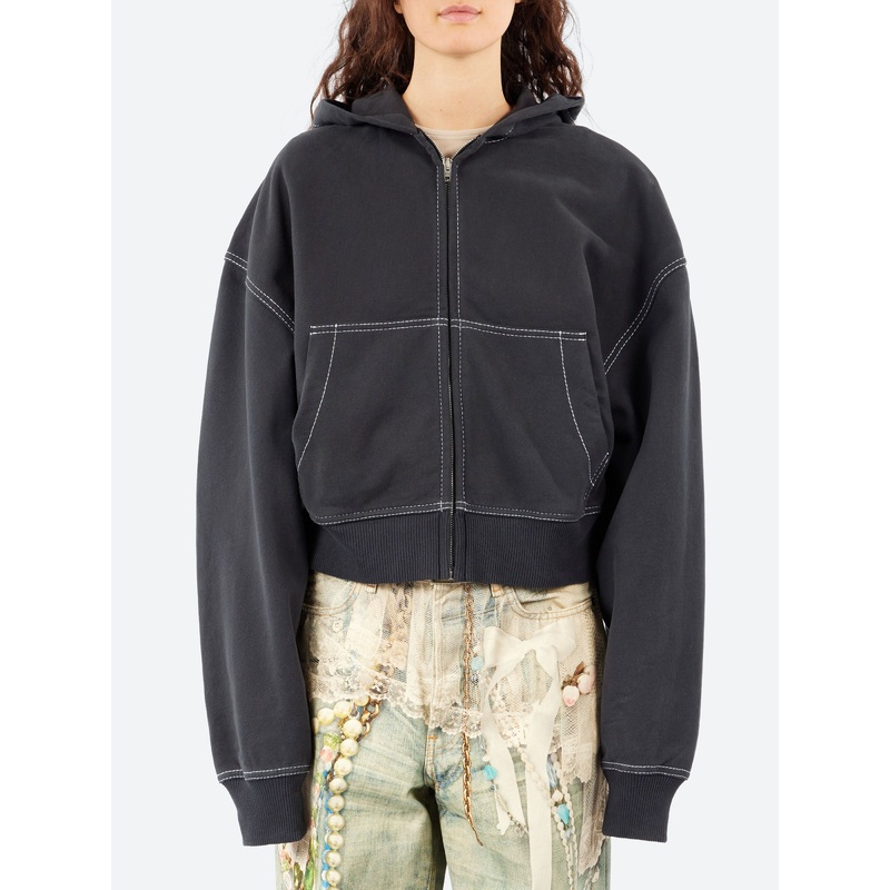 Hooded zip-up sweater crafted from soft cotton fleece, featuring a seasonal Acne Studios signature logo embroidered on the back. Detailed with contrast stitching, a front kangaroo pocket, and ribbed cuffs and hem. Cut to a relaxed unisex fit.HoodedFront zi