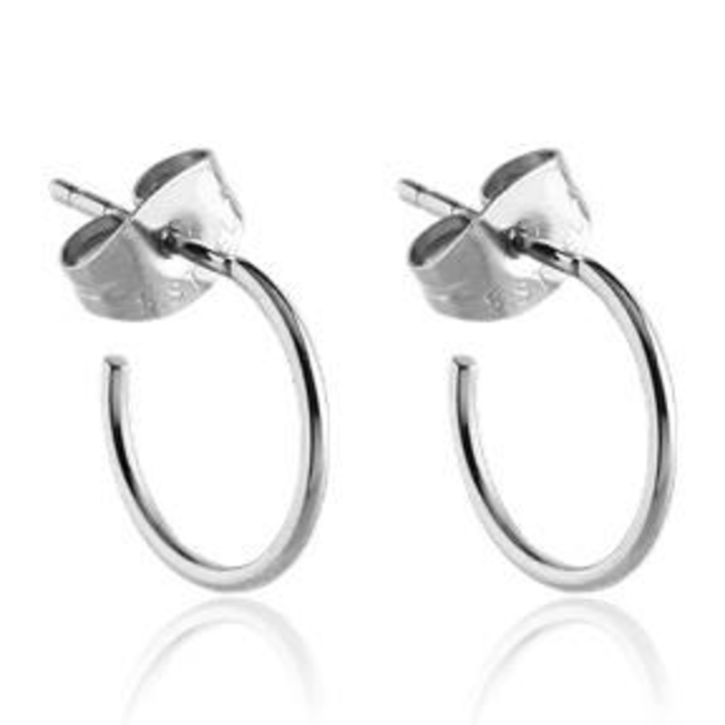 These 20 gauge hoop stud earrings with friction backs are made from 316L stainless steel. The hoops have a 3/8″ interior diameter.