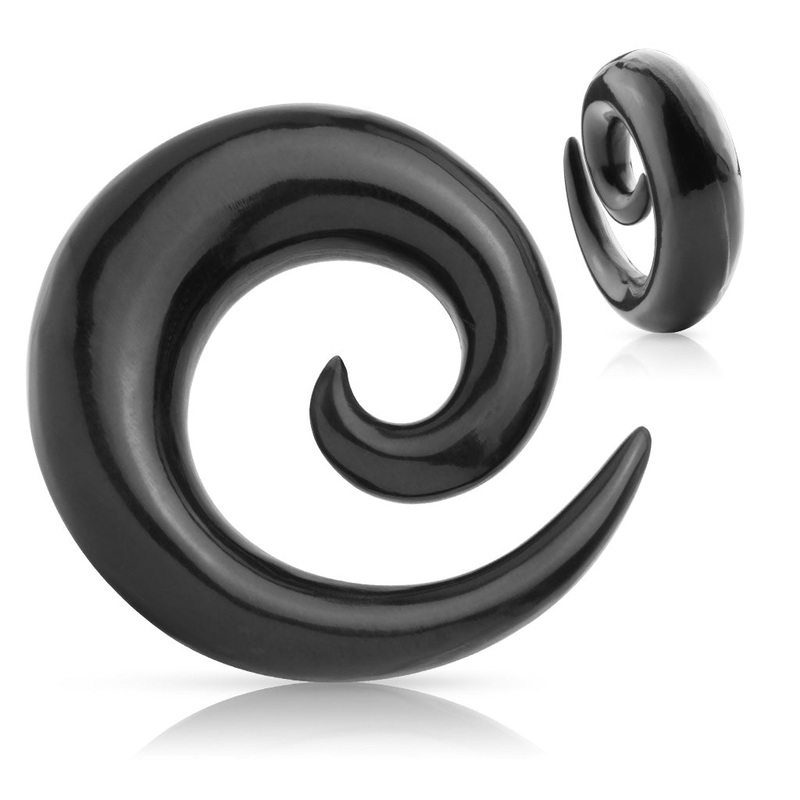 These tapered spirals are hand carved from water buffalo horn. The diameter measurements are approximate. Choose your size below.