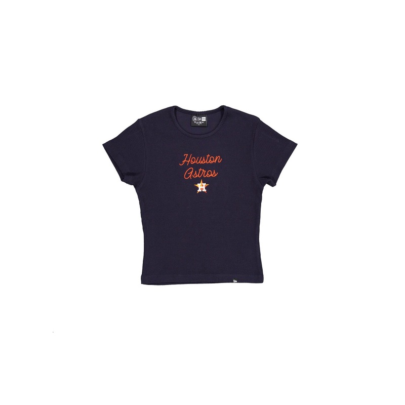 The Houston Astros Sport Night Women’s Baby Tee features an embroidered Astros script above a team logo at the front.