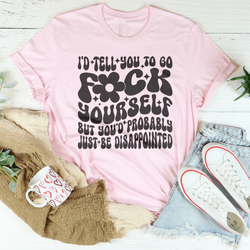 Step up your t-shirt game with a touch of fearless sass. Our “I’d Tell You To Go F-ck Yourself But You’d Probably Just Be Disappointed” t-shirt is the perfect blend of cheeky humor and style. This bold statement piece isn’t just a shirt; it’s an attitude.