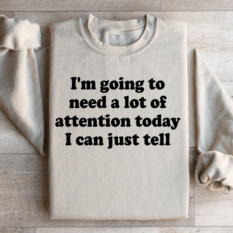 Whether you’re heading out for brunch, running errands, or just enjoying a day of leisure, our “I’m Going To Need A Lot Of Attention Today” sweatshirt ensures you’ll be the center of attention. Embrace your inner extrovert, make a statement, and let your charisma do the talking. Grab yours now and get ready for a day of spotlight moments!