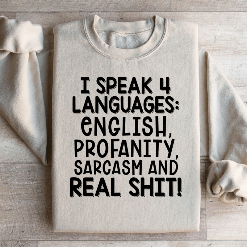 Show off your linguistic prowess with our “I Speak Four Languages” sweatshirt. This top is a nod to multilingual speakers who take pride in their ability to communicate across cultures. It’s perfect for language enthusiasts and polyglots alike.