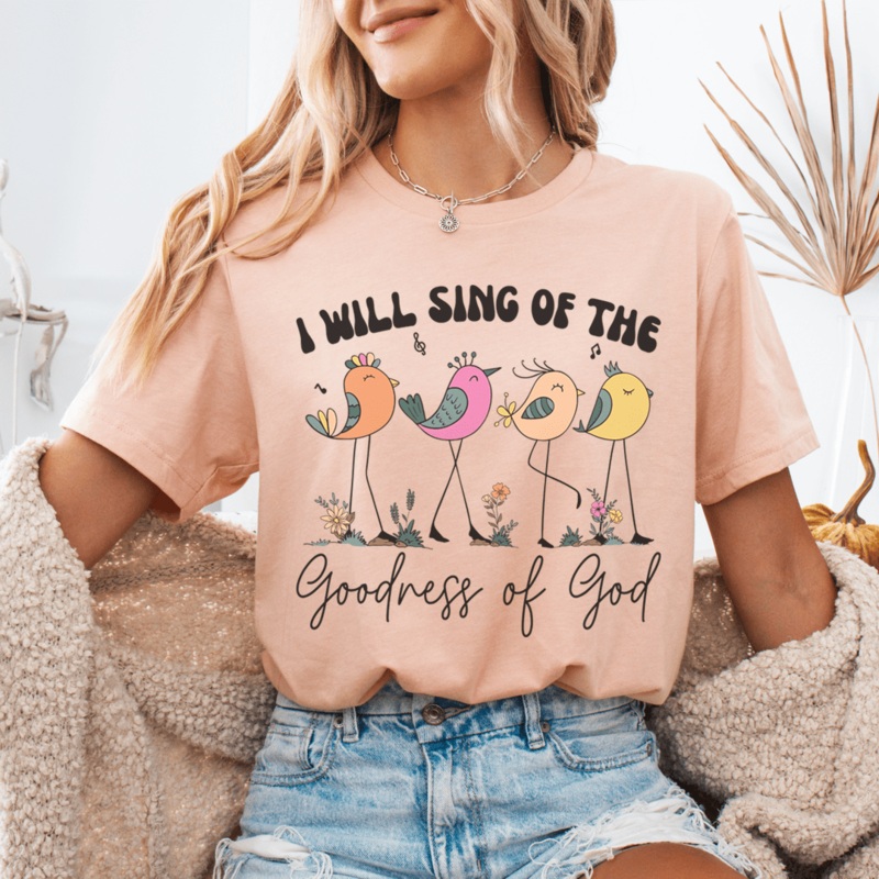 I Will Sing Of The Goodness Of God Tee Heather Prism Peach S