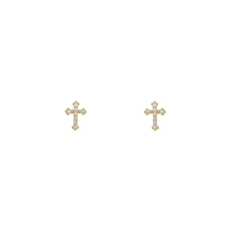 Ice-Budded Cross Stud Earrings (14K)