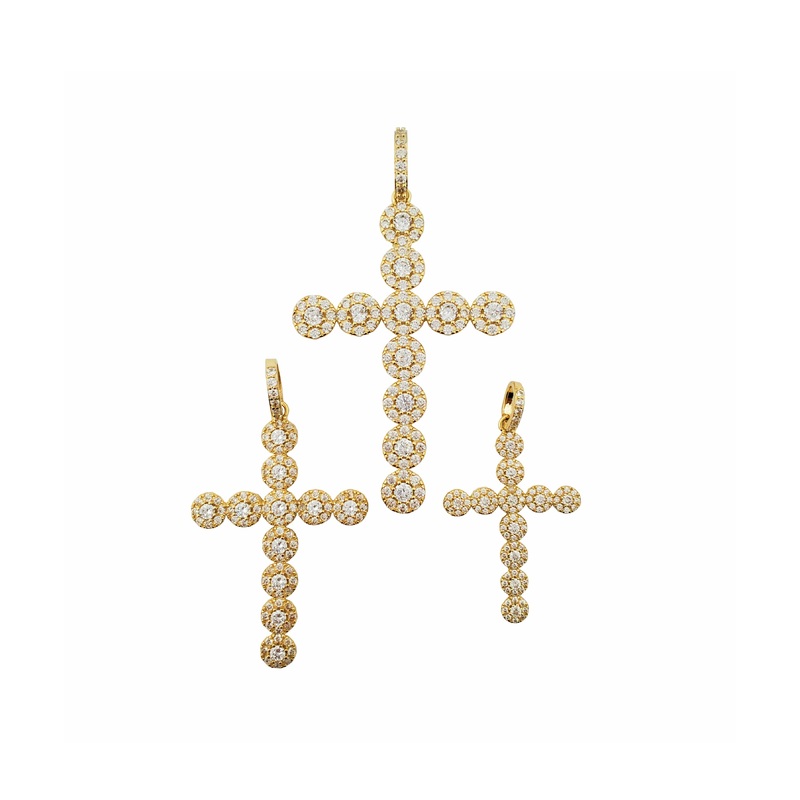 Iced-Out Clustered Segment Cross Pendant (10K) 62.80 mm x 36.65 mm x 7.5 Grams