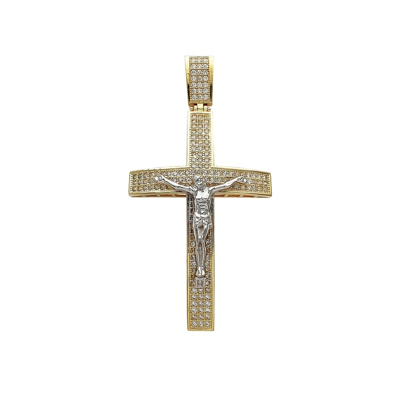 Precious Metal: 14 Karat Two-Tone GoldGemstone: Cubic ZirconiaStones may be upgraded upon request.Height:61.5 mm*Width:32.0 mm*Weight:8.9 grams**All weights are approximate.**Necklace sold separately.Please contact us if you have further questions about al