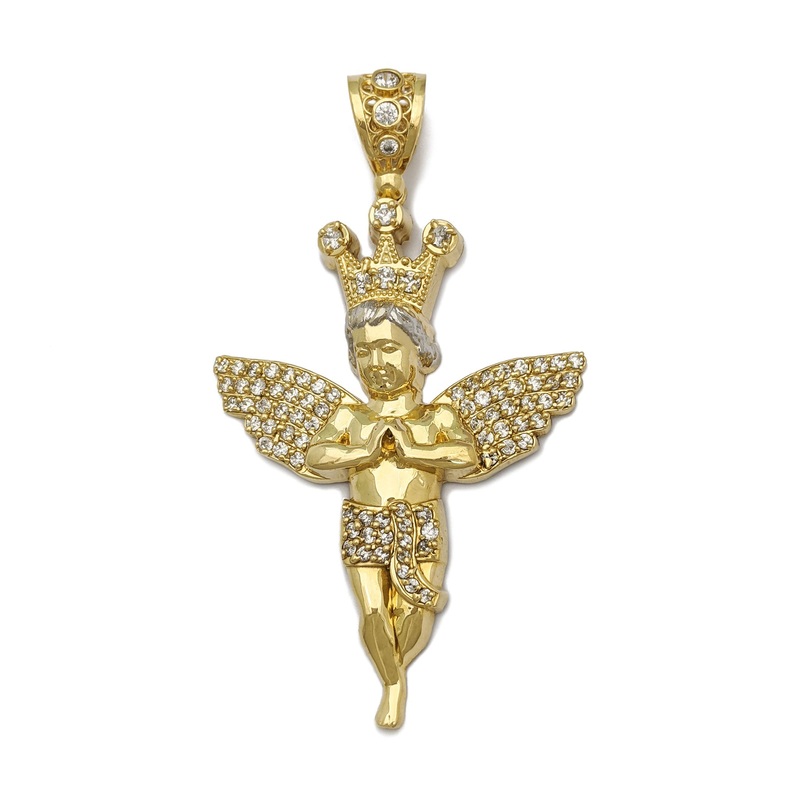 Iced-Out Crowned Baby Angel Pendant (10K, 14K) 10K Yellow Gold Height: 42.5 mm* x Width: 24.5 mm* x Depth: 7.95 mm*