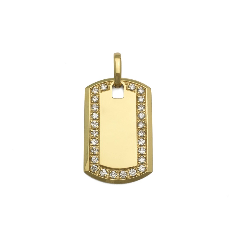 Precious Metal: 14 KaratYellow GoldGemstones: Cubic ZirconiaRound Shaped: WhiteStones may be upgraded upon request.Height: 64.5 mm*Width: 33.17 mm*Thickness: 2.72 mm*Approx. Weight: ~16.2 grams**All weights and measurements are approximate.**Necklacesold s