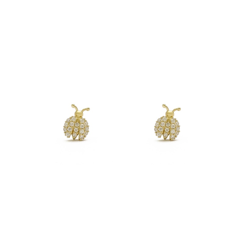 Earring Back Type: ScrewBackPrecious Metal: 14 Karat YellowGoldGemstones: Cubic ZirconiaRound Shaped: WhiteStones may be upgraded upon request.Height: 7.61 mm* (0.30 inch)Width: 5.8 mm*(0.23 inch)Post Length: 9.15 mm*Post Thickness: 0.63 mm*Approx. Weight: