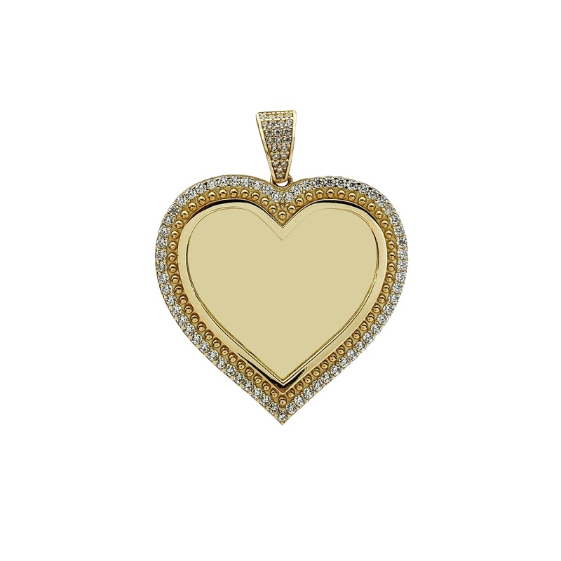 Photo printing included, please contact us via emailPresshereto see the samplesPrecious Metal:14 Karat Yellow GoldGemstone: Cubic ZirconiaAvailable with Diamonds.Height:44.2 mm*[1.7 inch](including the bail)Width:35.9 mm*Thickness:2.3 mm*Approx. Weight: ~7