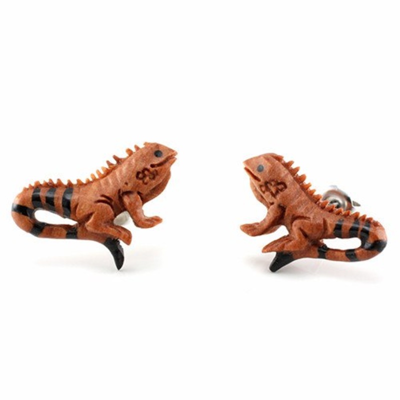 These iguanastud earringsare handcarved from sabowood by Urban Star Organics. The postsand friction backs aremade from 316L stainless steel.