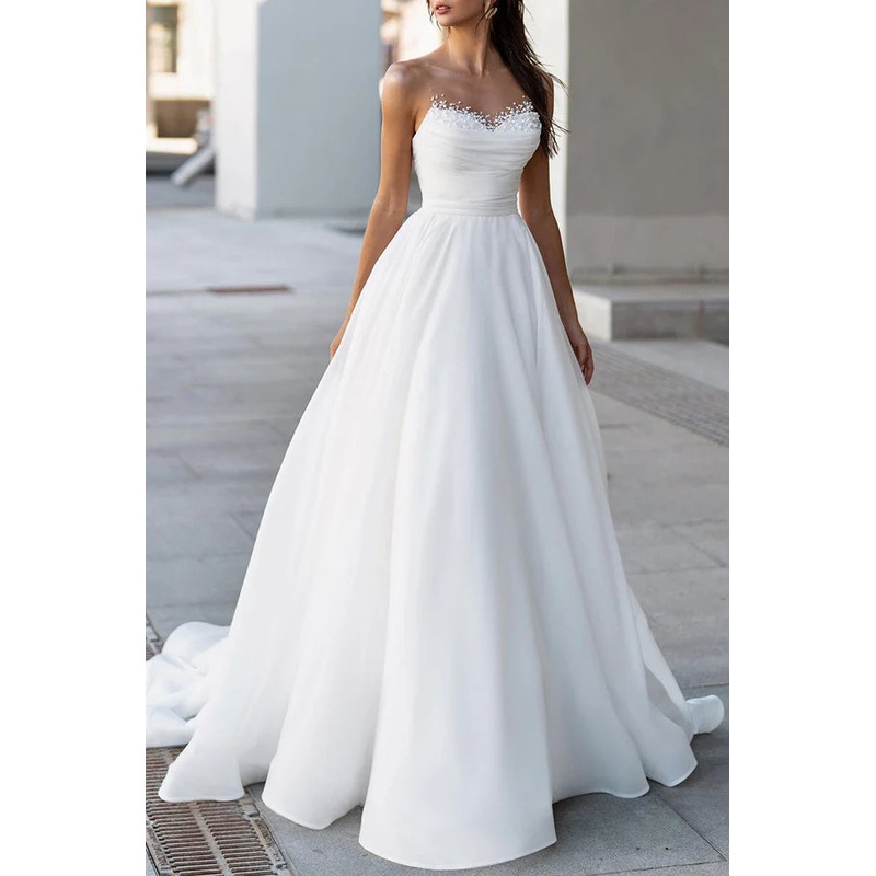 Illusion Neckline Hall Leisure Wedding Dress Eugenia Pearl Bridal Dress