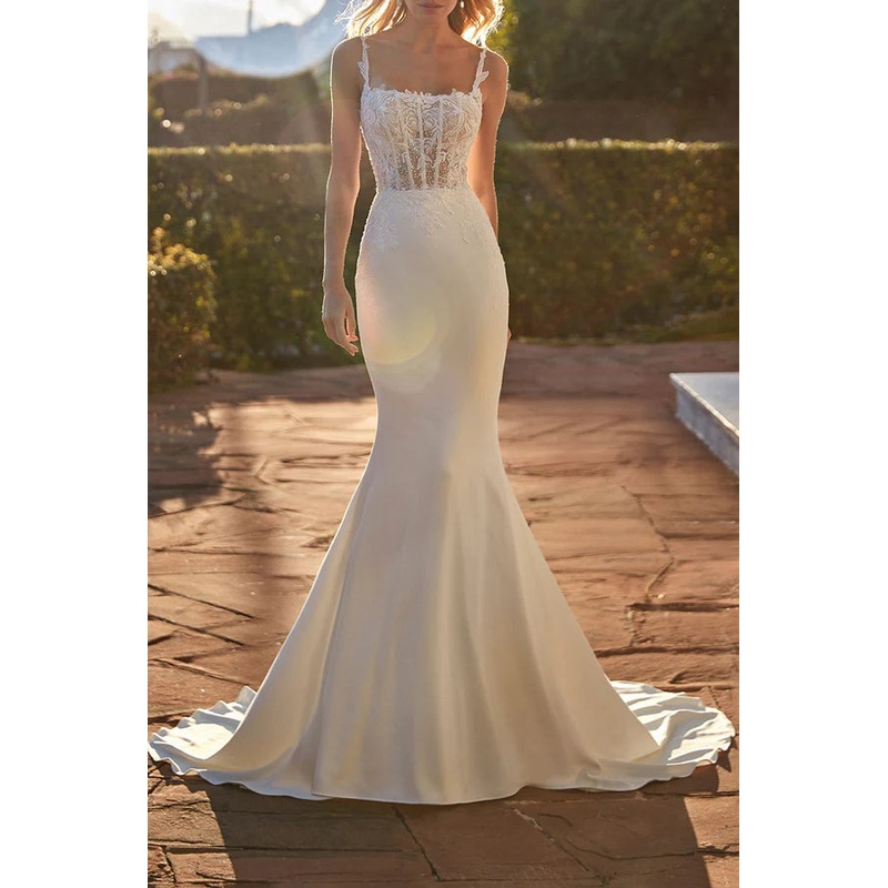 Illusion Spoon Lace Sticker Fish Tail Wedding Dress