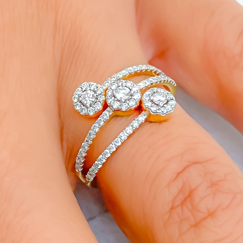 Impressive Floral Trio 18K Gold + Diamond Ring
