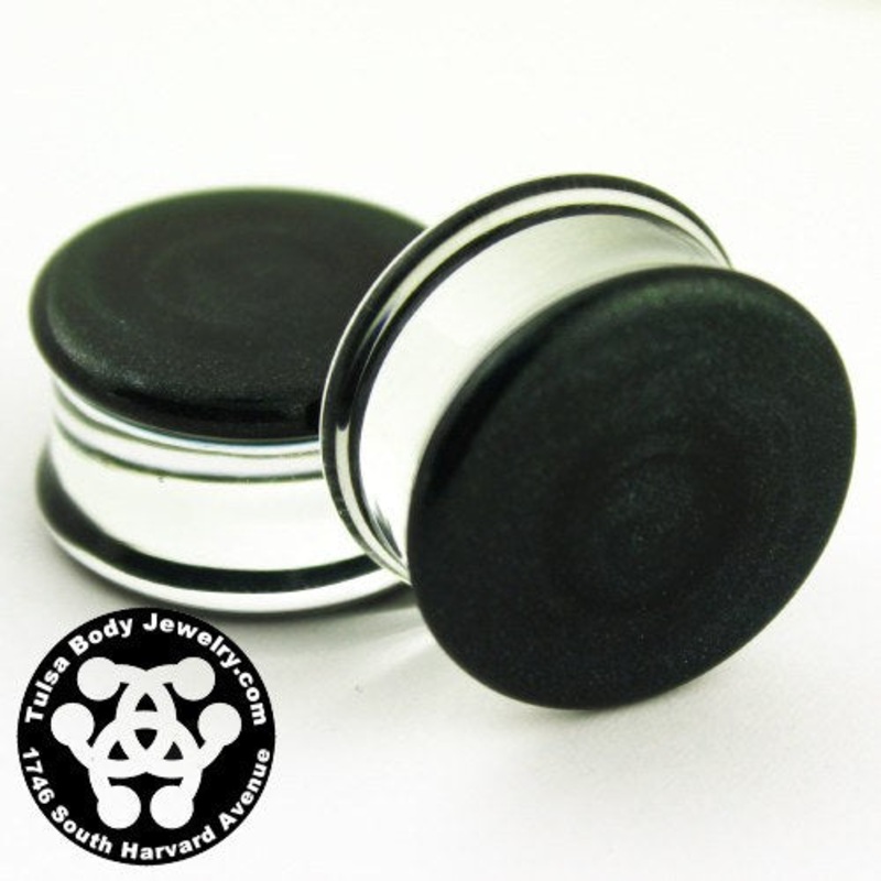 These double flare indigo sparklecolor front plugs aremade from hand blown borosilicate glass by Glasswear Studios. They have a wearable area of approximately 3/8" between flares. Choose your size below.