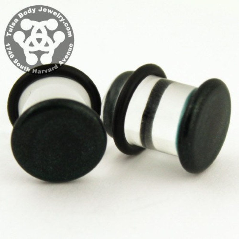 These single flare indigo sparkle color front plugs are made from hand blown borosilicate glass by glasswear studios. They have approximately 3/8" wearable area between the flare and o-ring. Two o-rings are included. Choose your size below.