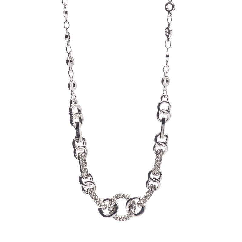 Discover the sleek and modern style of our Interlocking Chain necklace. Crafted from silver, it features a unique interlinking chain design with smooth and CZ encrusted links. Add a touch of sophistication to any look with this cool-toned accessory.
