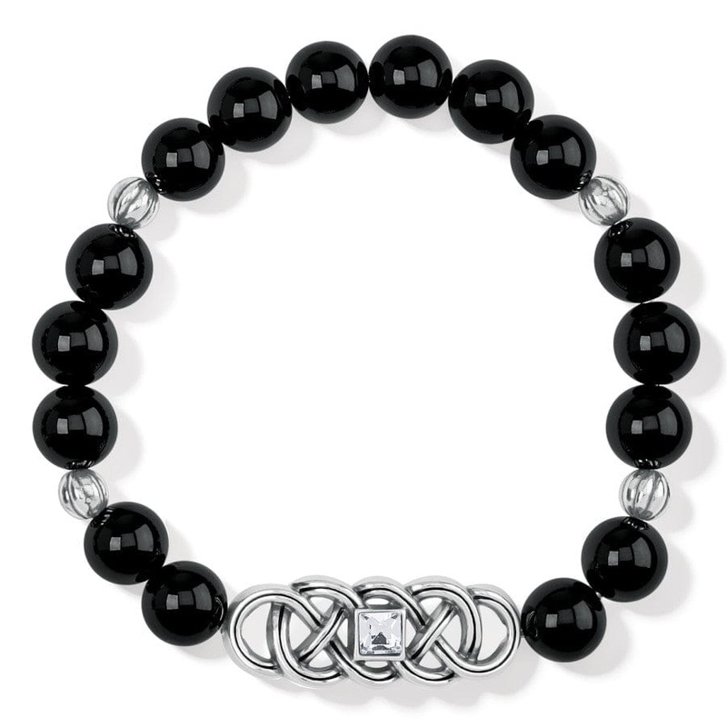 This semi-precious beaded black agate stretch bracelet features the Celtic knot motif symbolizing everlasting love and friendship capped with a hand-set fine quality crystal. Because we have used natural materials, each stone is truly one of a kind and may