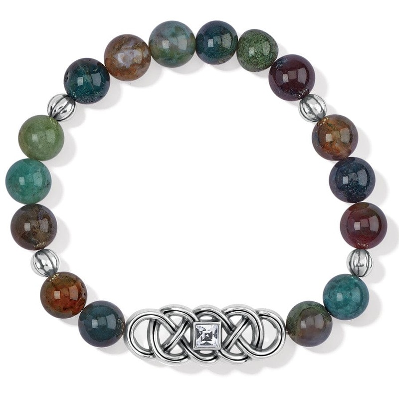 This semi-precious beaded jasper stretch bracelet features the Celtic knot motif symbolizing everlasting love and friendship capped with a hand-set fine quality crystal. Because we have used natural materials, each stone is truly one of a kind and may have