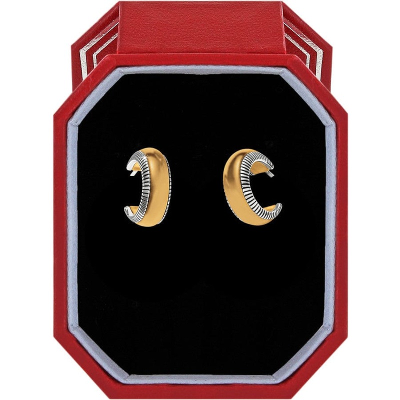 What could be more of a wardrobe staple than these petite hoops? Fine etched textured lines outline the silver edge for refined detailing, and the mixed metals make them ultra-versatile they go with all the silver and gold pieces that have been collected through the years, adding a touch of newness to favorite looks.