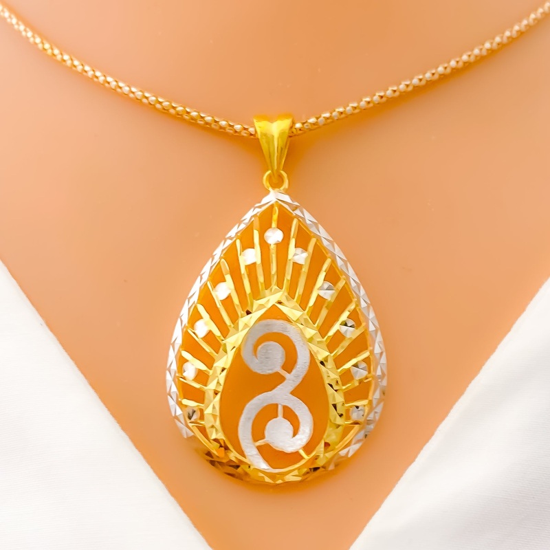 Elevate your style with our Intricate Lush 22K Gold Pendant, crafted with the finest 22k gold and weighing 4.2 grams. This luxurious pendant features a stunning interplay of yellow and white gold, and measures 1.7″ in length. Note that the chain is not included, allowing you to personalize your look to your taste.