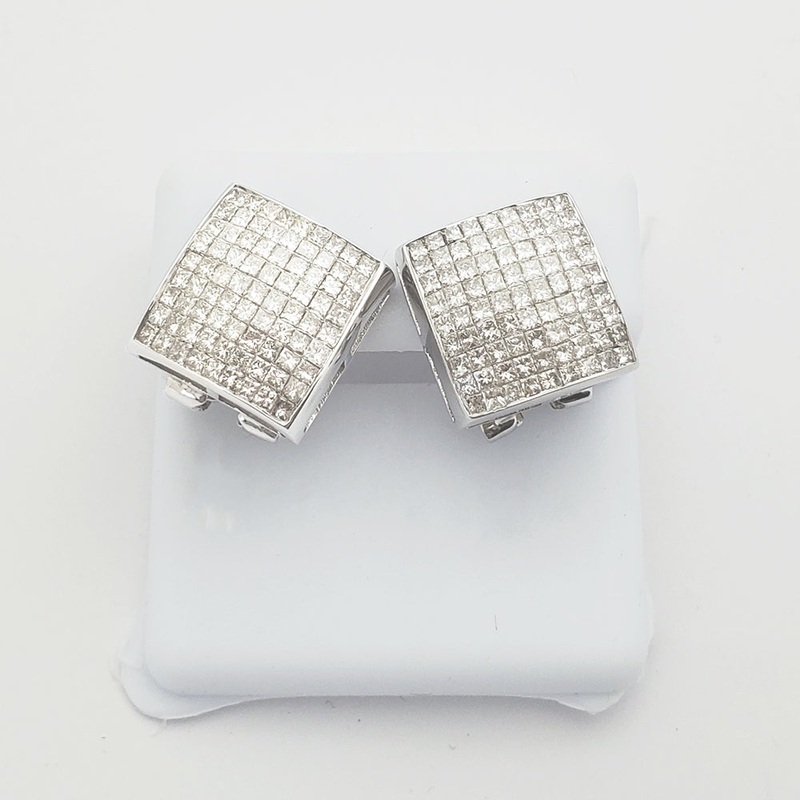 Be the first to review “Invisible-Set Diamond Concave Square Earrings (14K) 14k White Gold Diamond”