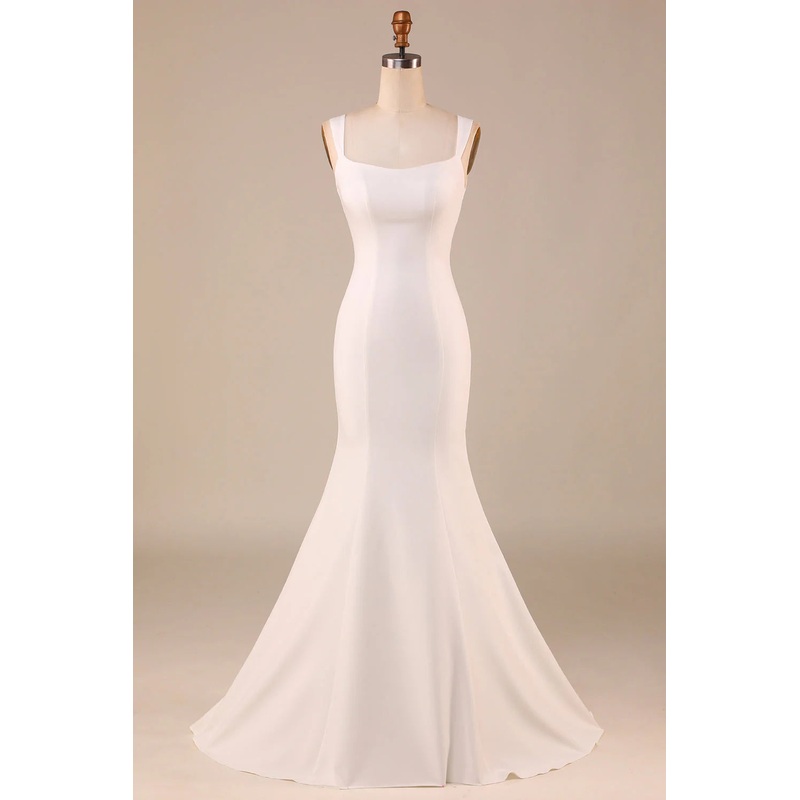 Ivory Dew Back Bow Simple Fishtail and Floor Length Wedding Dress