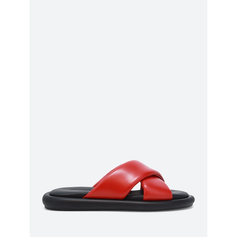 gravitypope wide crisscross straps at the vamp with a cushioned leather footbed for added comfort.Padded crisscross straps at the vampSlip-on styleSlightly cushioned footbedOpen toeMaterialsUpper: leatherLining: leatherOutsole: rubberMade in ItalySize Guid