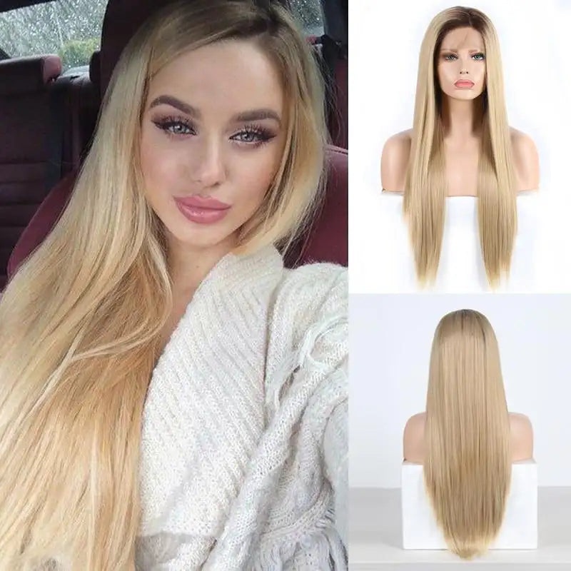 Janey Full Density Straight Hair Blonde Lace Front Wig with Dark Brown Roots