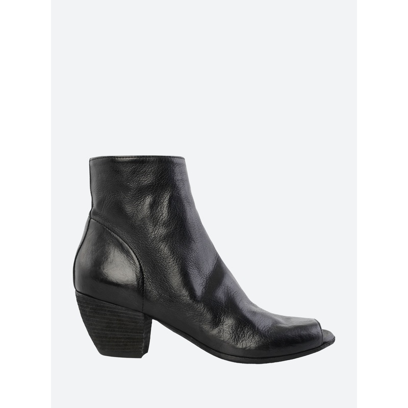 Ankle heightPeep toeBack zip closureMeasurements:2" stacked heelMaterialsUpper: leatherLining: leatherOutsole: leather with rubber insertsMade in ItalySize GuideFits slightly large. If you normally wear a half size, we recommend choosing the closest full s