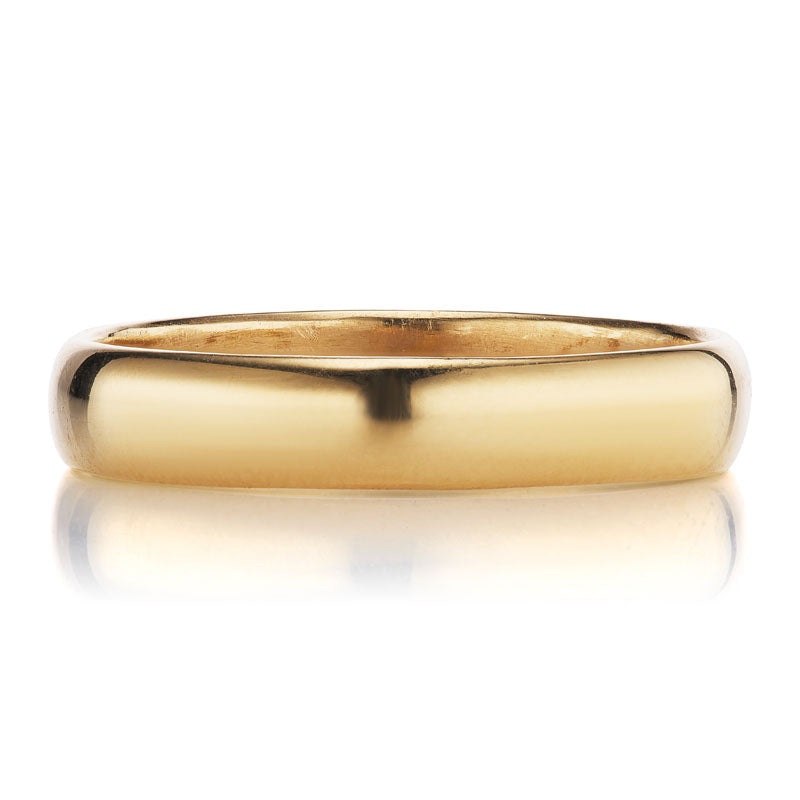 TheJeff band is a AB made Men’s wedding band. ThisSlightly RoundedMen’s Wedding Band is approximately 4.15mm wide, 1.5mm thick. It is made in the perfect hue of 18kt yellow gold (made to match the AB-made engagement rings and bands) and finished with a shinypolish. Also available in Platinum.