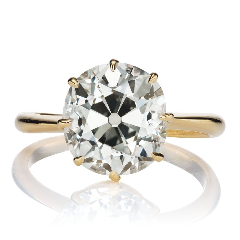 TheJen 4.05 ring is an AB original design made right here in NYC. The ring centers a GIA-certified 4.05-carat oldmine cut diamond ofS-T color,VS2 clarity. The stone is set in an 8-prong 18kt yellow goldsetting. The ring is currently size5.75 and can be resized!