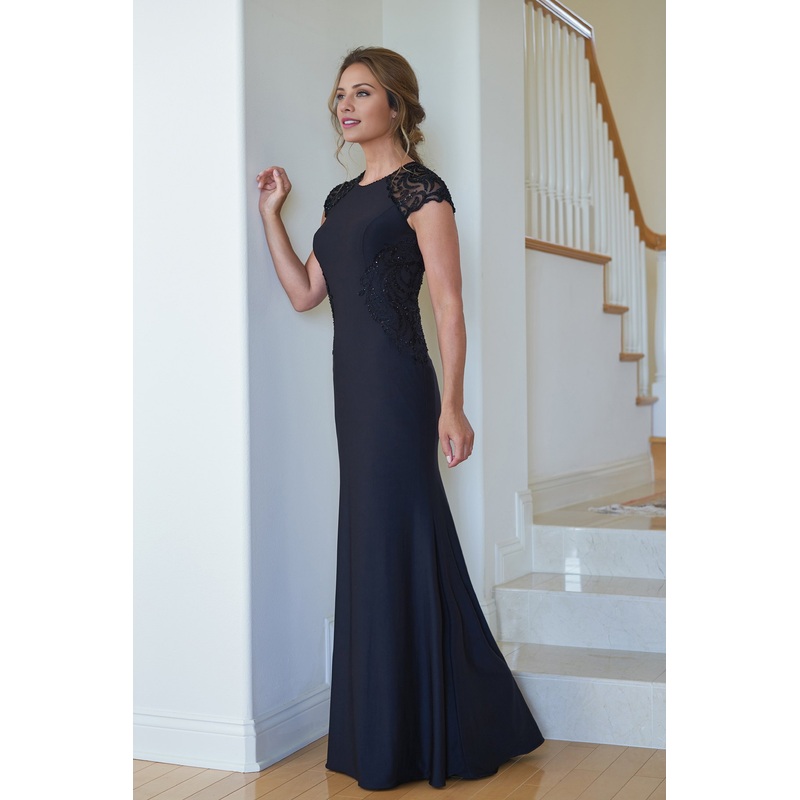 Jewel collar bead embellishments sleeve embroidery and floor length mother of bride dresses